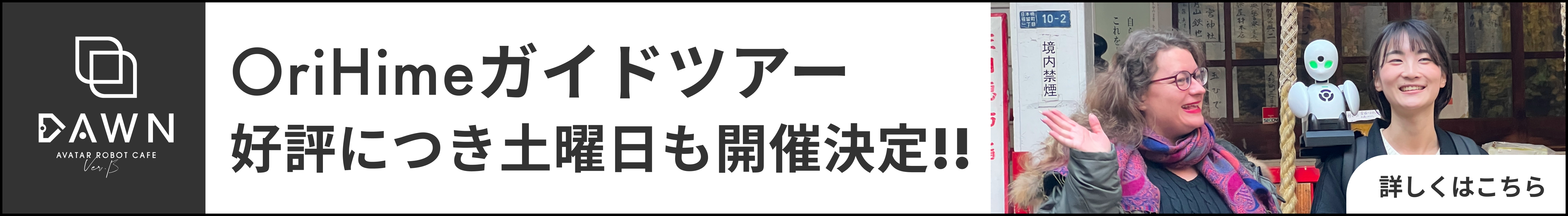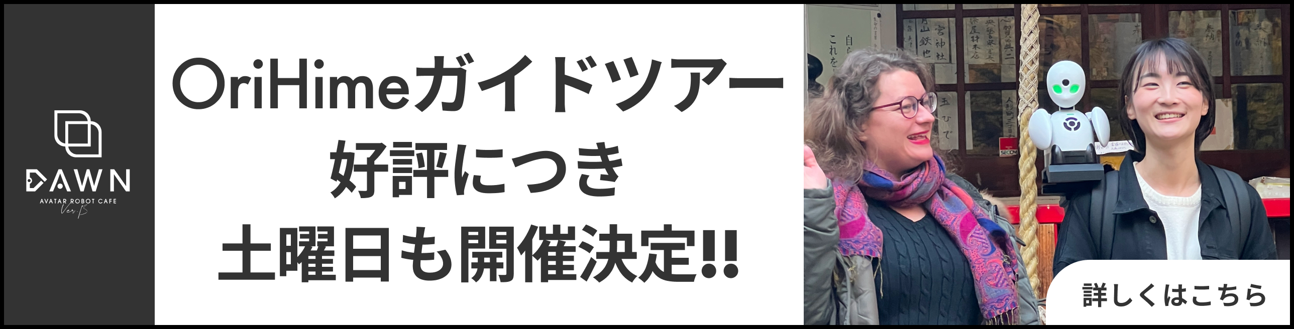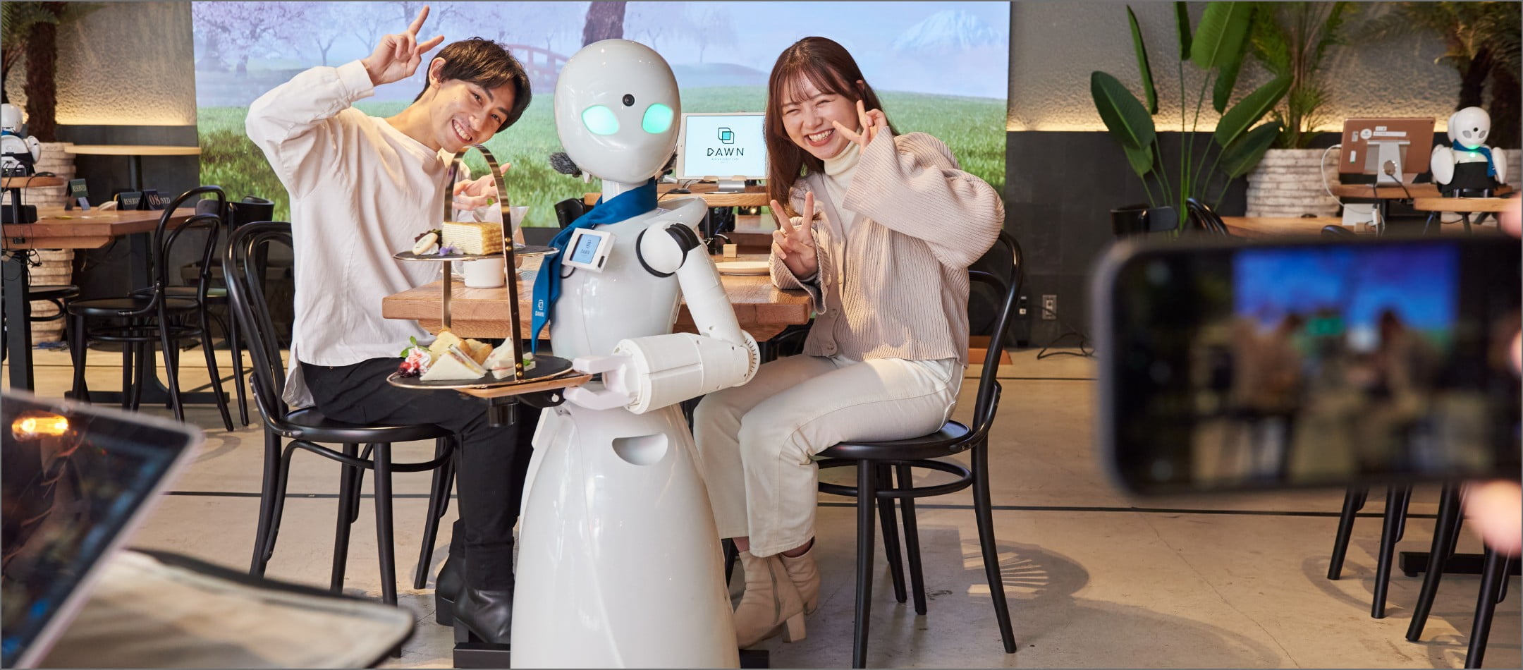 『分身ロボットカフェ DAWN ver.β』とは、株式会社オリィ研究所が運営する、さまざまな理由で外出することが困難な方々が分身ロボット『OriHime』&『OriHime-D』を遠隔操作しサービスを提供している常設実験カフェです。