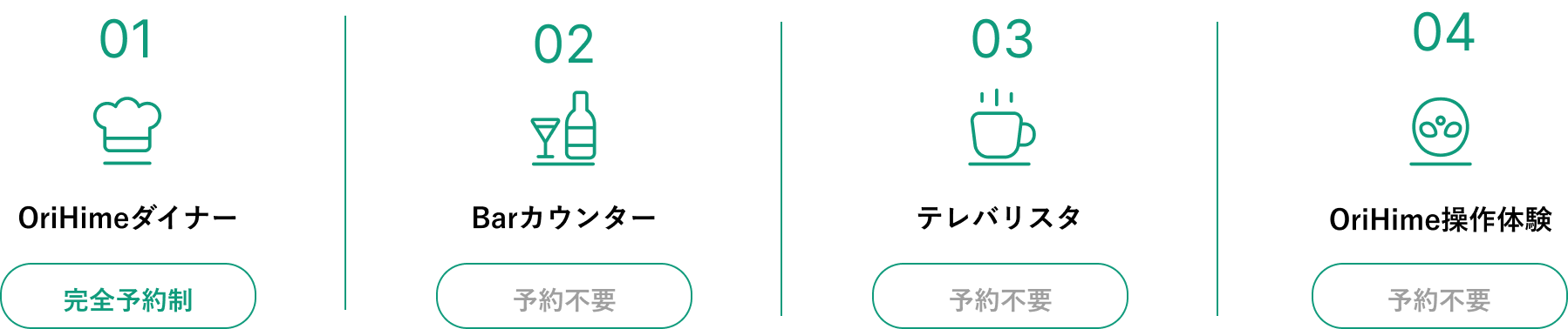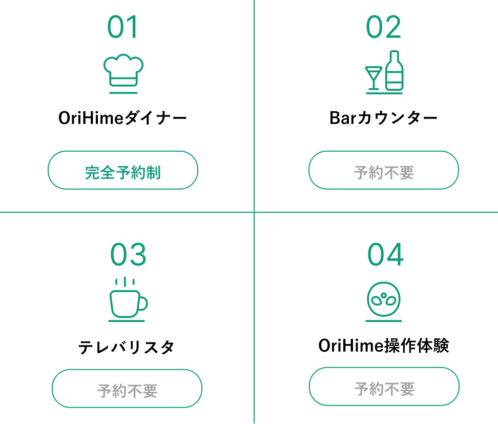 ・当店は一部の席を除いてOriHime接客サービス料として入場料金を頂戴しております。
