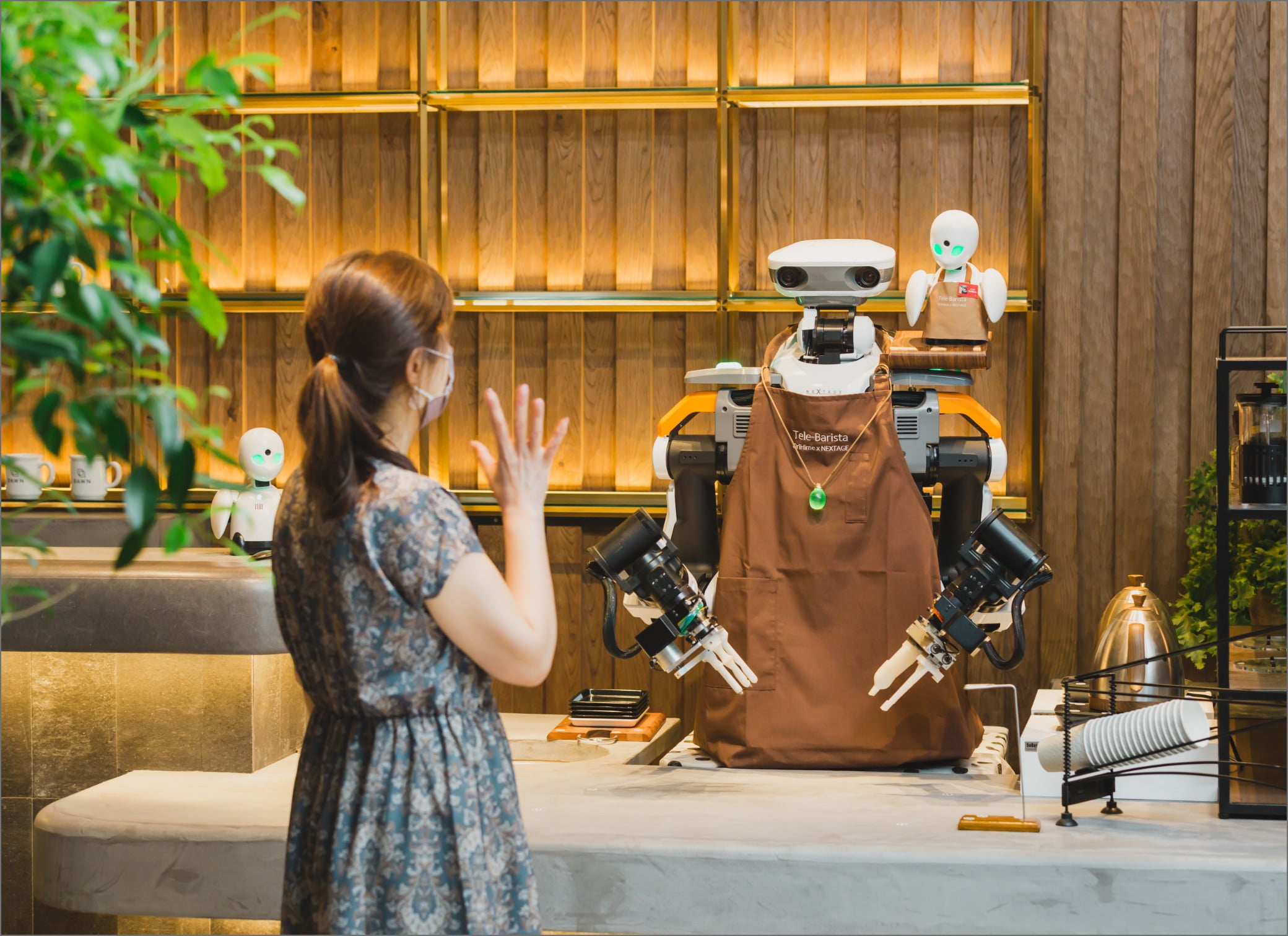 バリスタ研修を受けたOriHimeパイロットがロボット「NEXTAGE」を操作して、お好みに合ったコーヒーをご提供させていただきます。