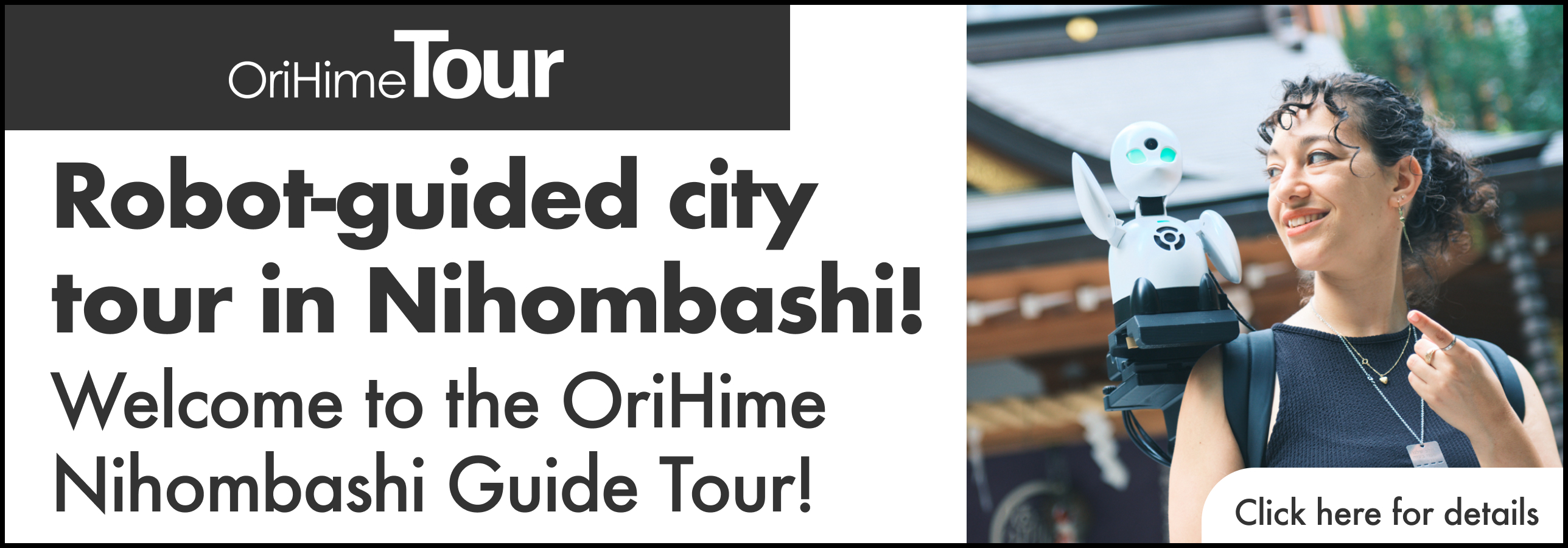 With the telepresence robot “OriHime” perched on your shoulder, you’ll explore the city guided remotely by a pilot from afar!