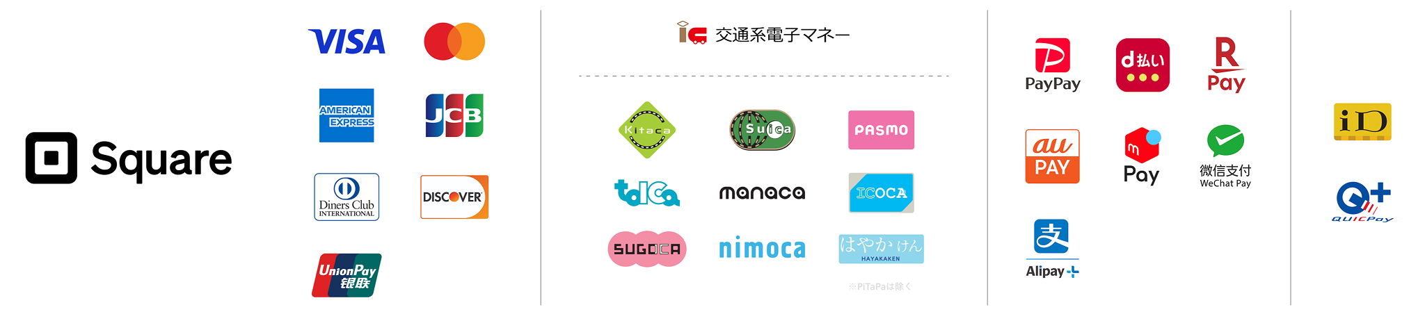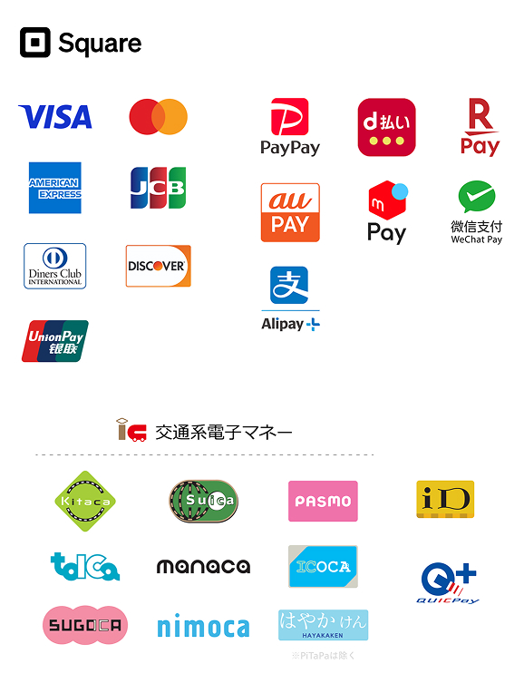 We only accept cashless payments such as credit card. The following services are available.