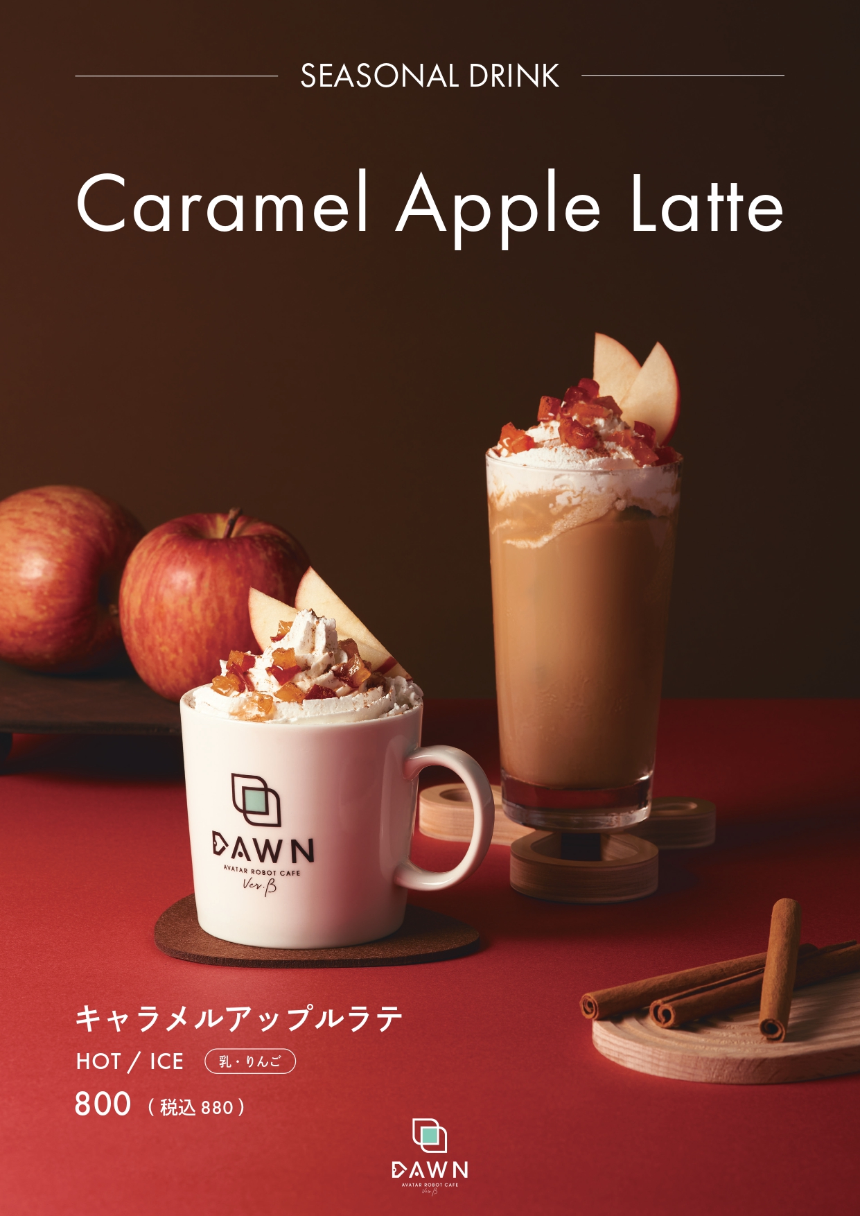 Thank you for visiting the alter ego Robot Café DAWN ver.β. A new seasonal menu item will be available from 4 October! Caramel Apple Latte is now available. It has a good balance of apple, caramel and cinnamon flavours. It is recommended for this autumn only! Pizza and parfait are also available in NEW versions. Please try them at Café DAWN!