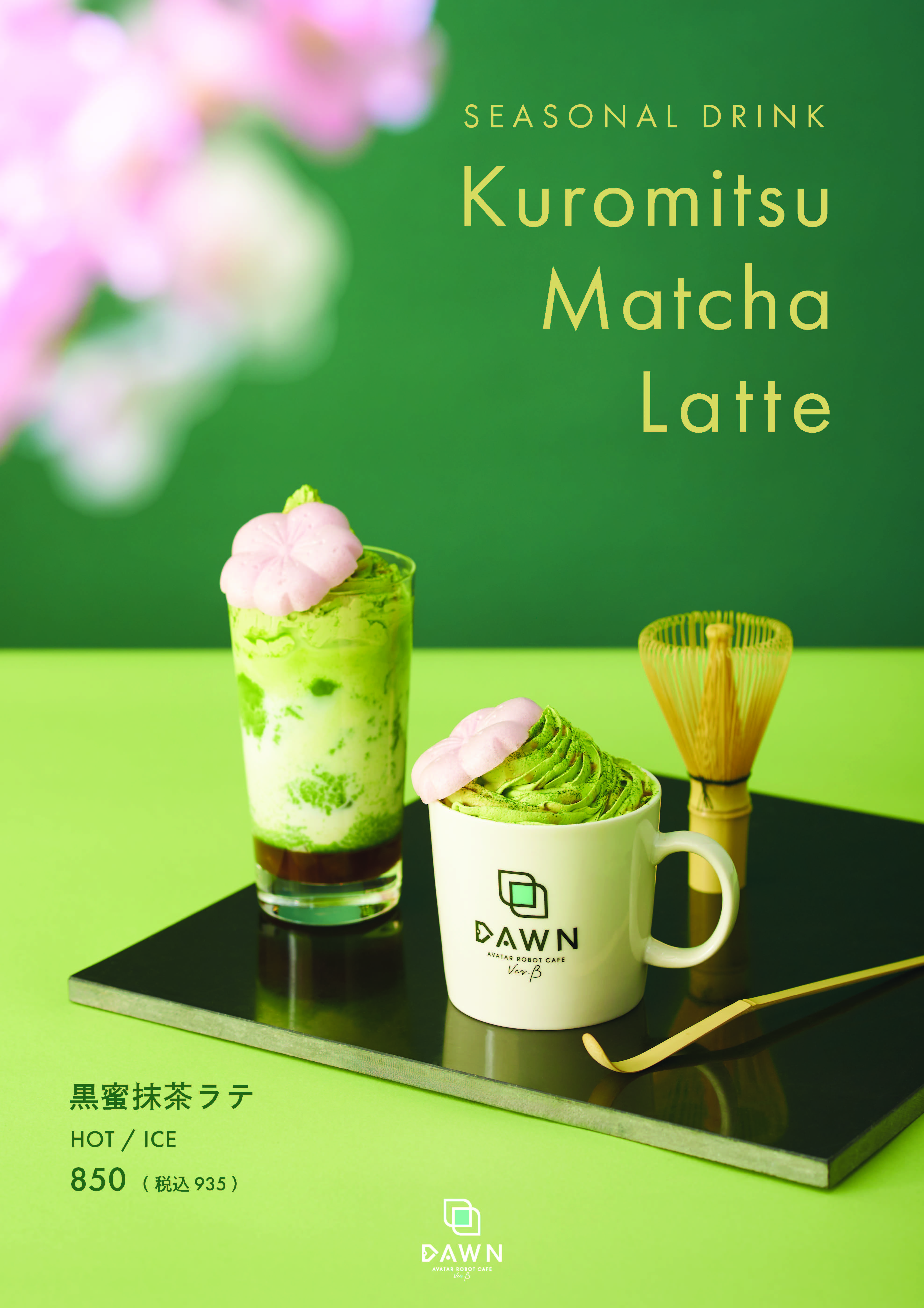 Enjoy a special latte made with matcha green tea, which has a deep flavour. Served with black sugar syrup and bracken starch dumpling and "sakura( cherry blossoms)" crispy wafers made from pounded rice. Plaese feel eary spring!